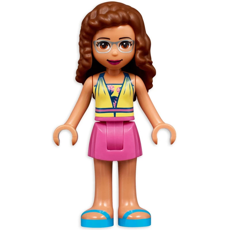 Minifigure Friends, Olivia, dark pink skirt, halter top with strawberries
